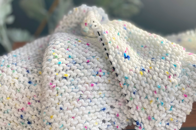 This pattern makes a perfectly square blanket. This Crosswise Baby Blanket is 30″ x 30″.
